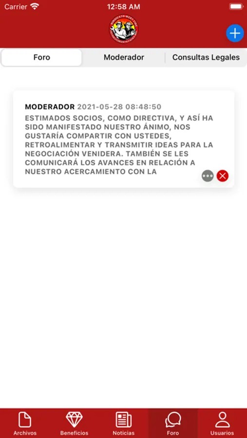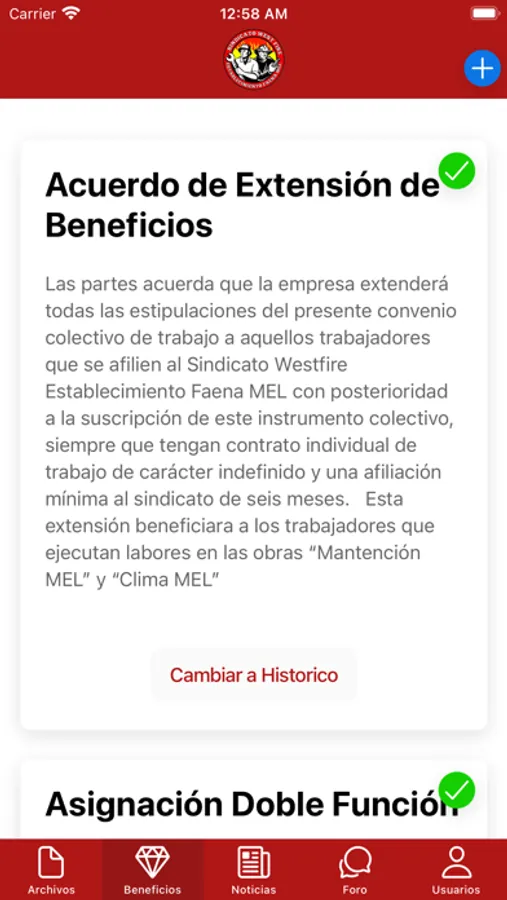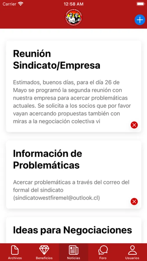 Aplicación informativa de las actividades del sindicato donde los colaboradores pueden acceder a noticias, documentos y beneficios oficiales en todo momento.