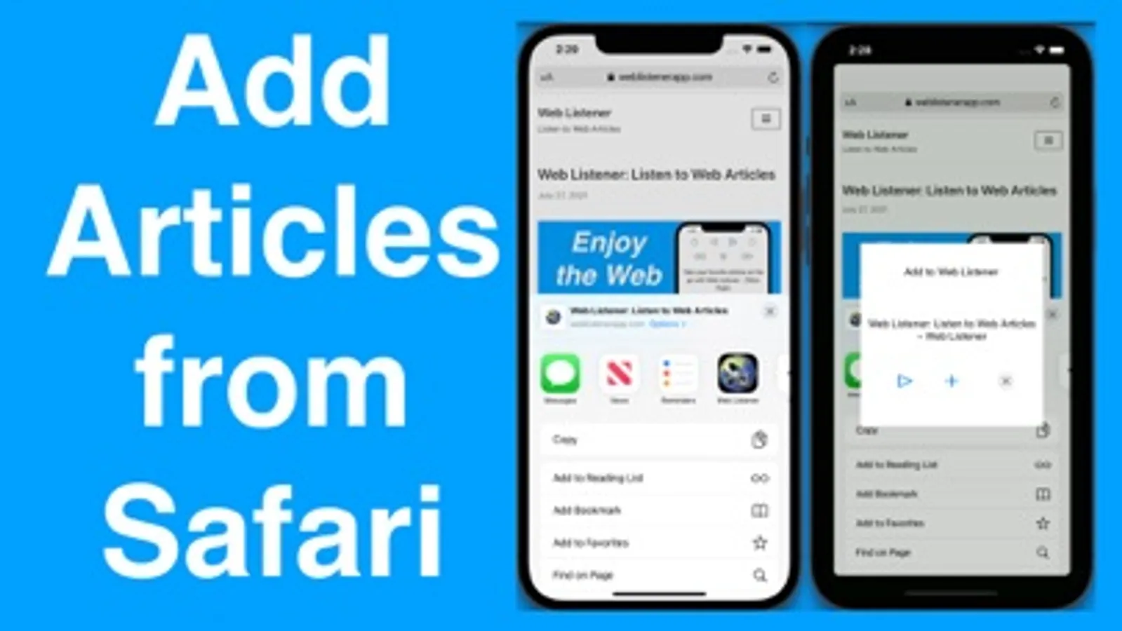 You can share the article from Safari or other apps. Just press the share button and select Web Listener.