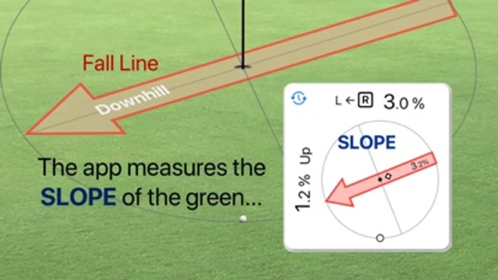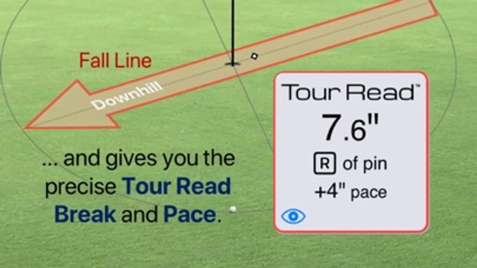 The Tour Read™ Golf app accurately measures the slope of the green and translates this into the precise Tour Read™ Break and Pace for any putt. Through regular training with the app, players will learn to estimate slope and easily calculate with the best read on their own.