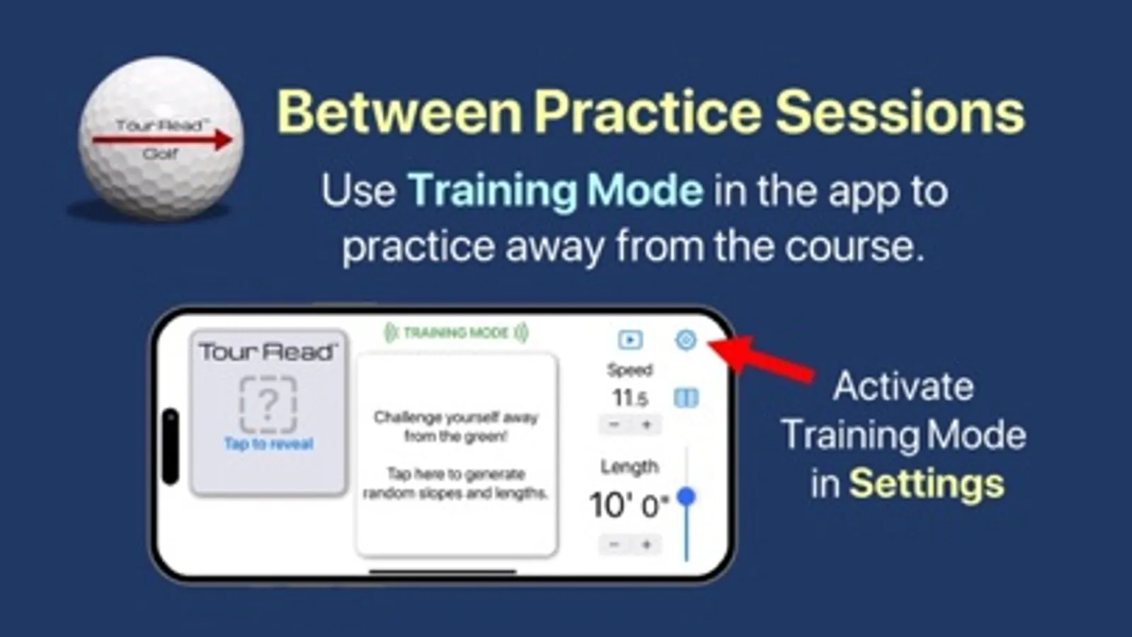 -Train at Home mode allows you to practice reading putts even when you aren't at the course. Test yourself and your friends with randomly generated putts.