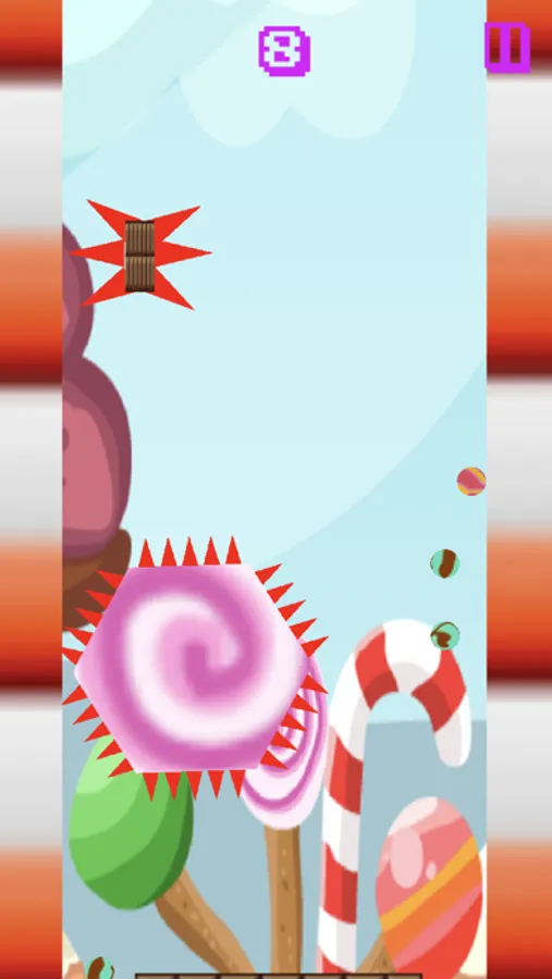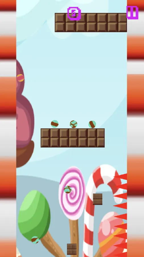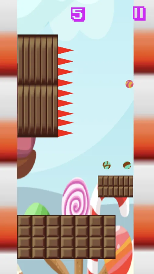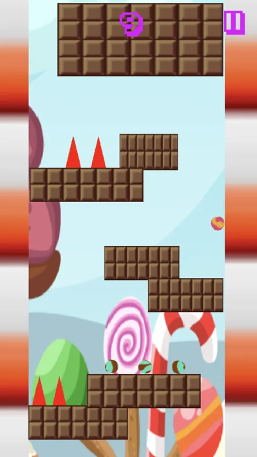 You can move the candy side to side by tapping on the screen. Avoid all the spikes and traps in its way or your candy will crumble, resulting in game over.