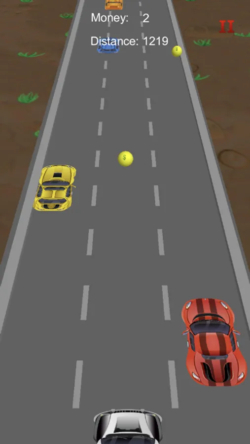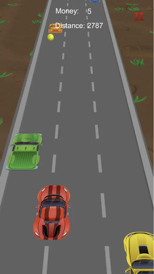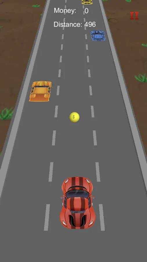 As you are speeding you have a score based on total distance travelled. How far can you go? The speed of your sportscar increases over distance. Collecting coins also gives you points.