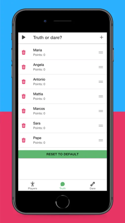 In this game there are countless game modes, since you can customize all the questions and challenges as you want, they are also saved so that you always have them at hand, and in case you want to restart them you have a reset button.