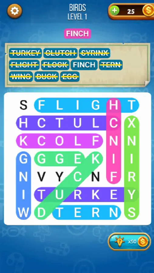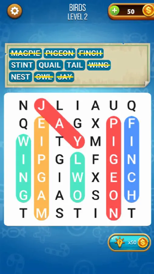 - Search for words by swiping up, down, left, right, or diagonally in infinite word search games