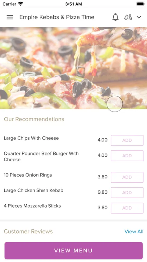 Order food online from one of the finest takeaways in town. We are proud to serve the surrounding area. At Empire Kebabs & Pizza Time, we serve a variety of food such as pizzas, burgers, wraps, kebabs and more.