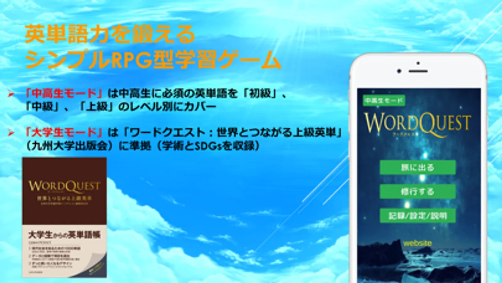 冒険を進めながら英単語を学習することができるアプリです。中高生にとって必須の単語が学べる「中高生モード」と、学術英単語、SDGs関連の英単語がメインの「大学生モード」があります。大学生モードの内容は「ワードクエスト:世界とつながる上級英単」(九州大学出版会)と連動しています(上級レベルです)。強固な語彙力を身につけるための冒険に出掛けましょう!