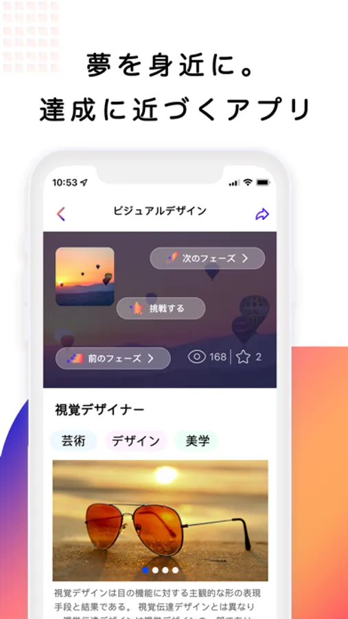 このアプリは、専門家やプロの方から達成するまでの工程・段階を学ぶことができ、夢から『具体的な次の行動』を把握し、夢に邁進することのできる達成型のSNSアプリ。