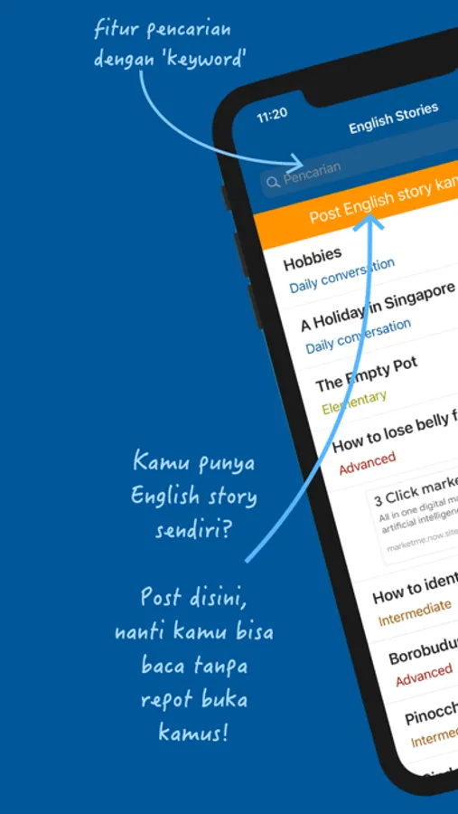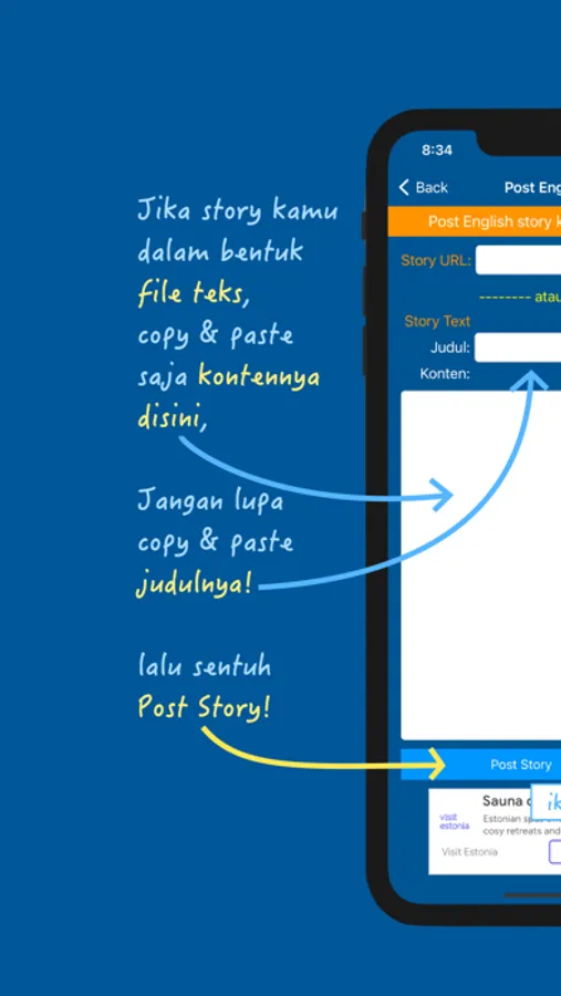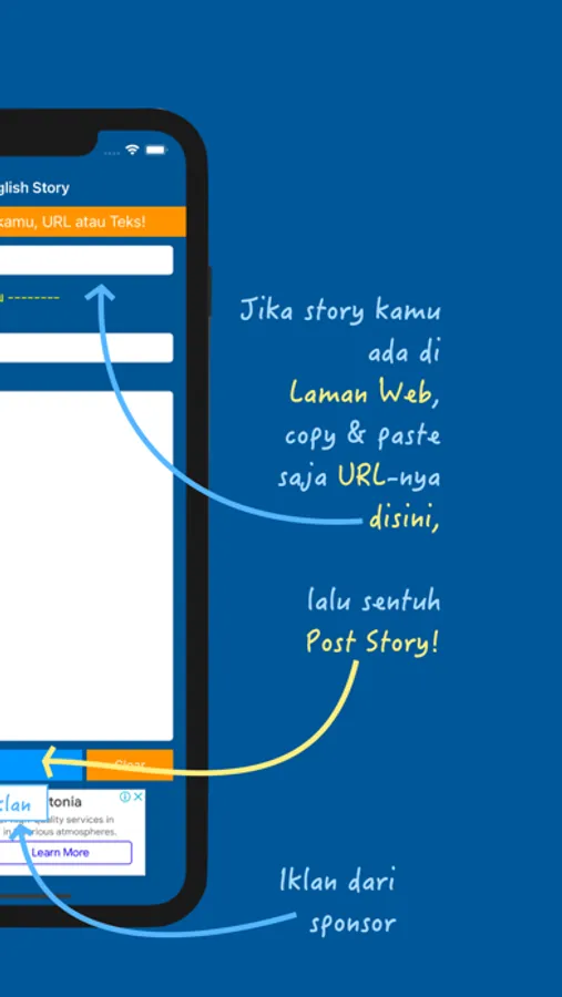 Serunya lagi, kamu juga bisa “posting” teks Inggris punya kamu sendiri, sehingga kamu bisa baca lancar tanpa repot buka kamus.
