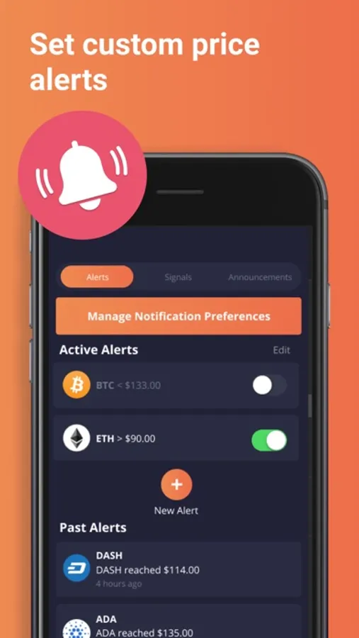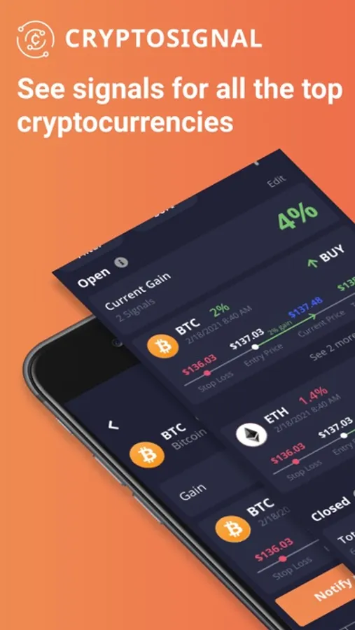 Alert notifications will push you to real time Cryptocurrencie market opportunities, crypto notifications have real time currency tracker capability, you will be notified of signals of hot cryptos listed everyday.