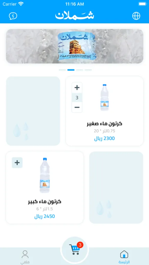 تطبيق يساعد المستخدم على طلب كمية معينة من مياه شملان بسرعة كبيرة وجهد أقل.