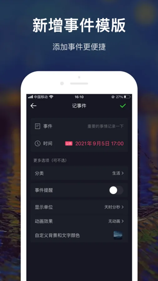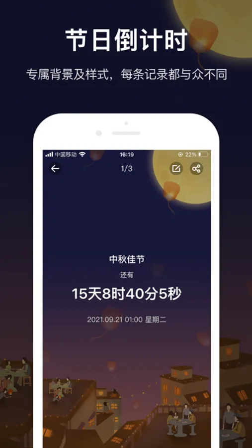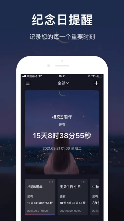 时间规划大师是专为珍惜时间的您而量身定制的时间规划工具,它以精确到秒的方式让您感知到时光如流水般逝去,提醒您要珍惜时间、珍爱身边的一切。它极为简洁美观。通过时间规划大师,您可以方便的创建纪念日、倒数日、倒计时、日程、备忘、便签等,是您管理时间、管理纪念日、生日、规划计划、倒数日、倒计时的好帮手。