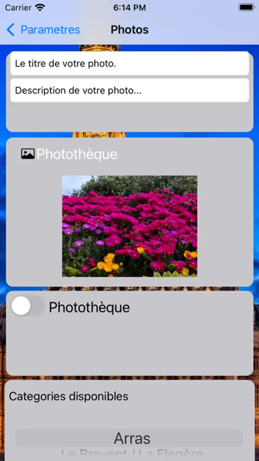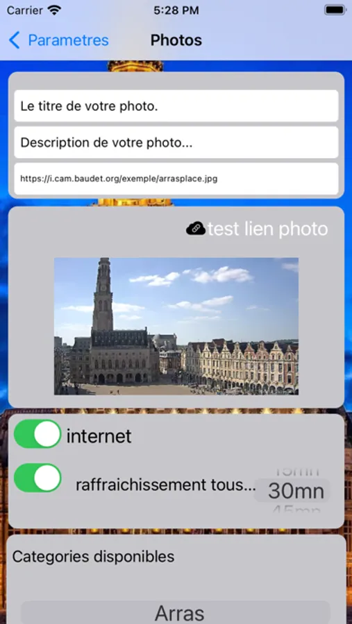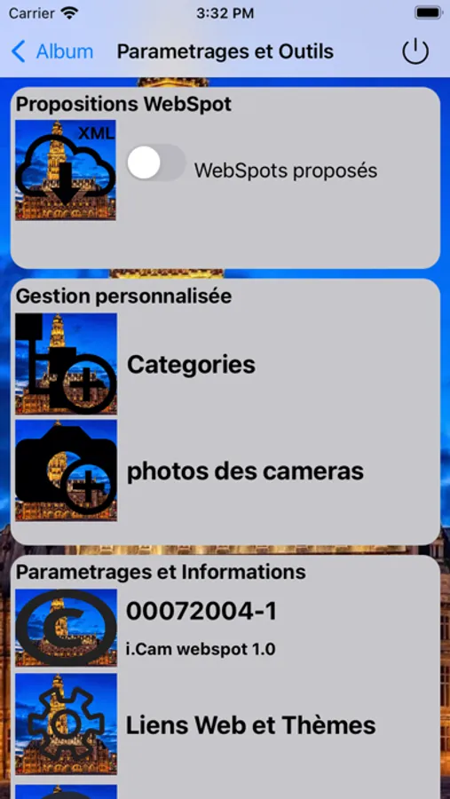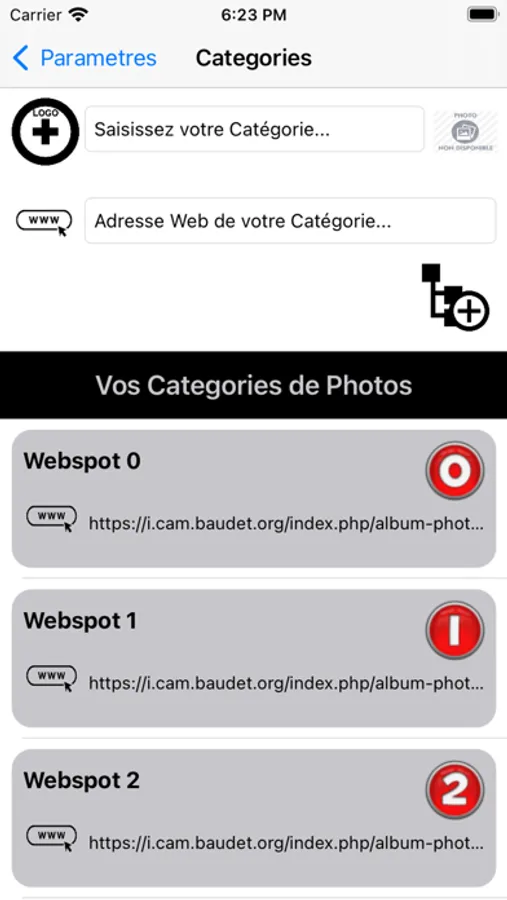 Importer des photos et leur catégorie à travers des propositions de Webspot disponibles et présentées dynamiquement en fonction des ajouts de l'auteur de l'application.