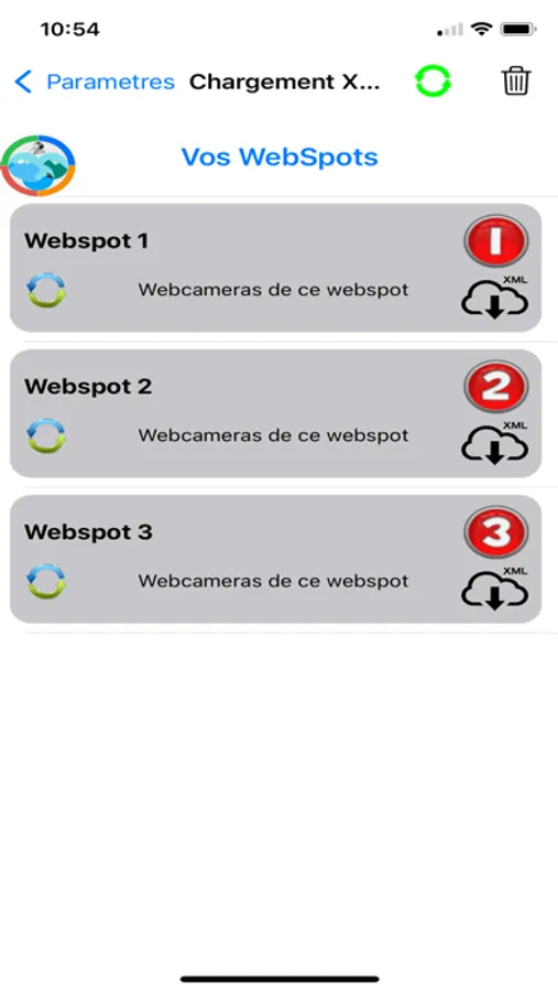 Enregistrer des préférences de liens web d'un site de webspot (site général, répertoire des cameras, fichier XML maitre).