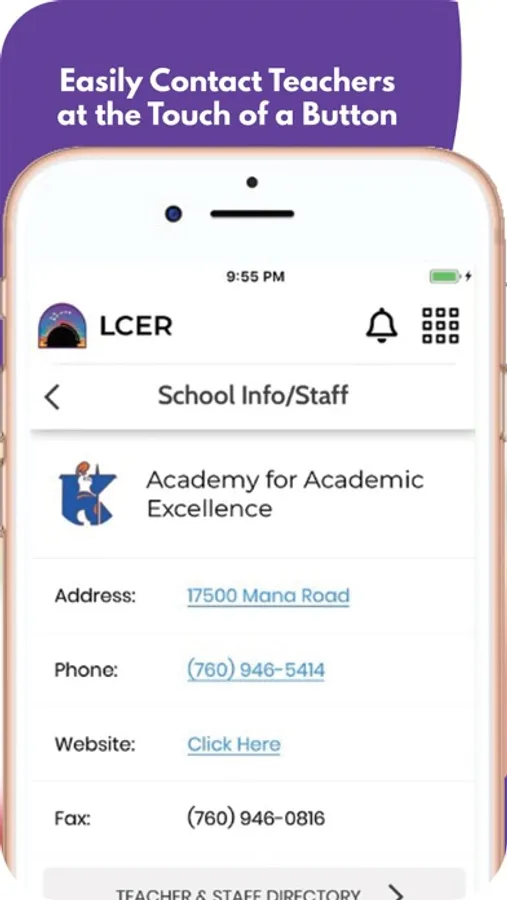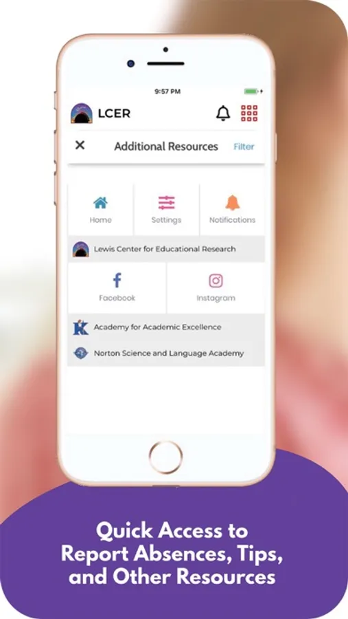 The app includes information for the district and all schools. Filter by the school your child attends to feature information for that school.