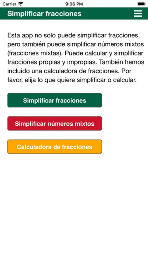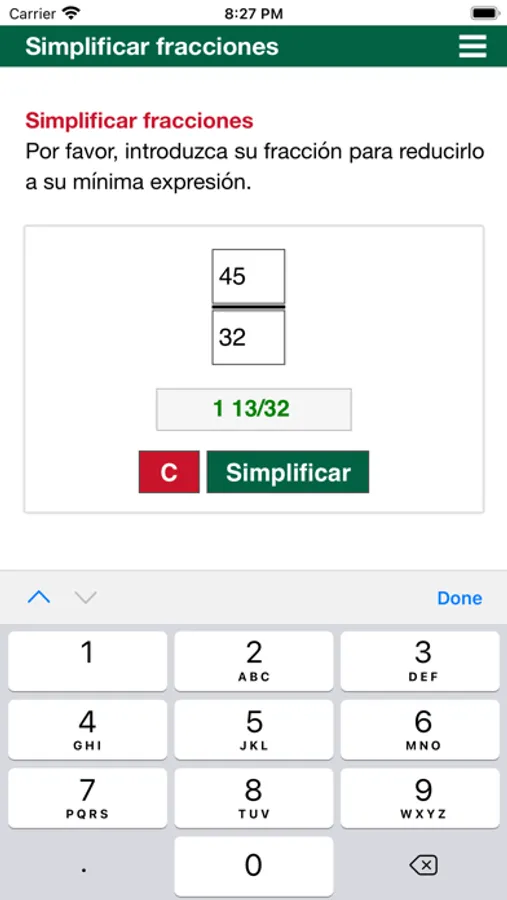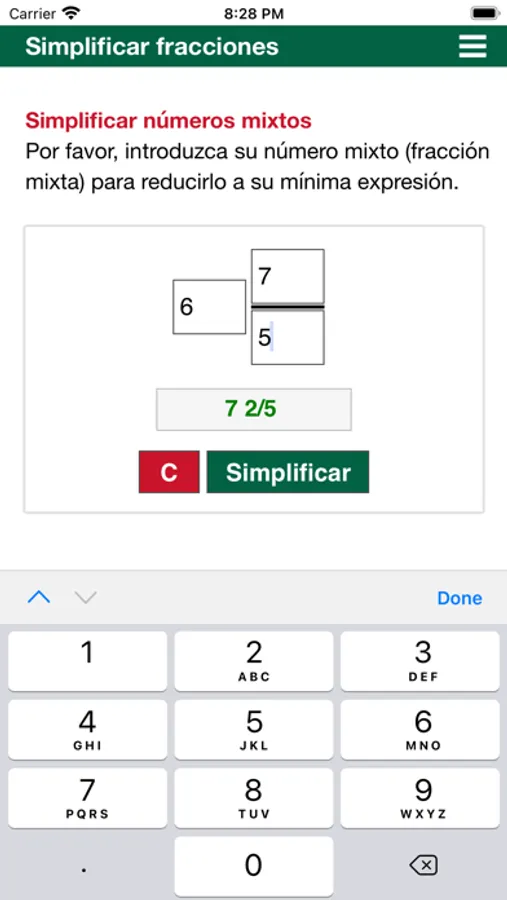 Esta app no solo puede simplificar fracciones, pero también puede simplificar números mixtos (fracciones mixtas). Puede calcular y simplificar fracciones propias y impropias.