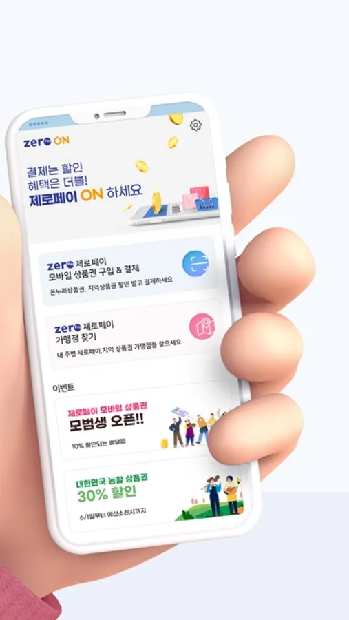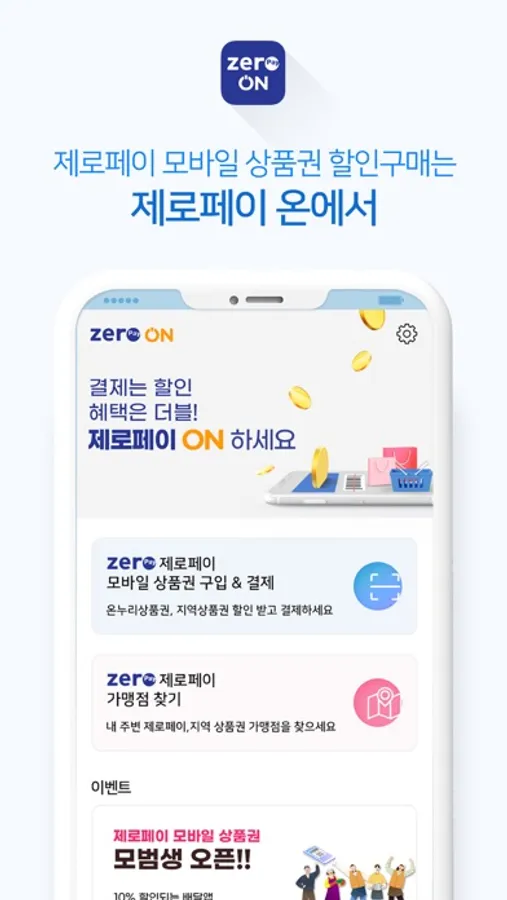 - 온누리상품권, 지역사랑상품권등 제로페이 상품권 구매/사용 및 관리