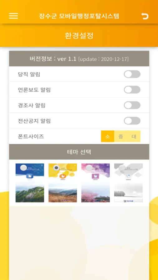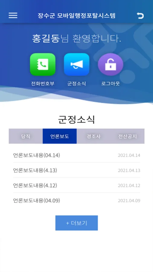 장수군청 모바일 행정포털 시스템 앱입니다.