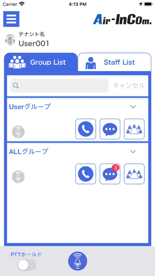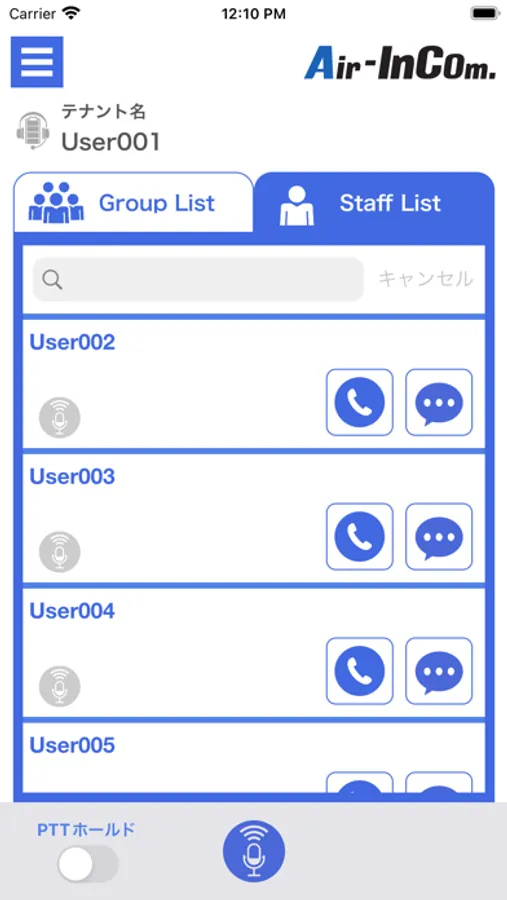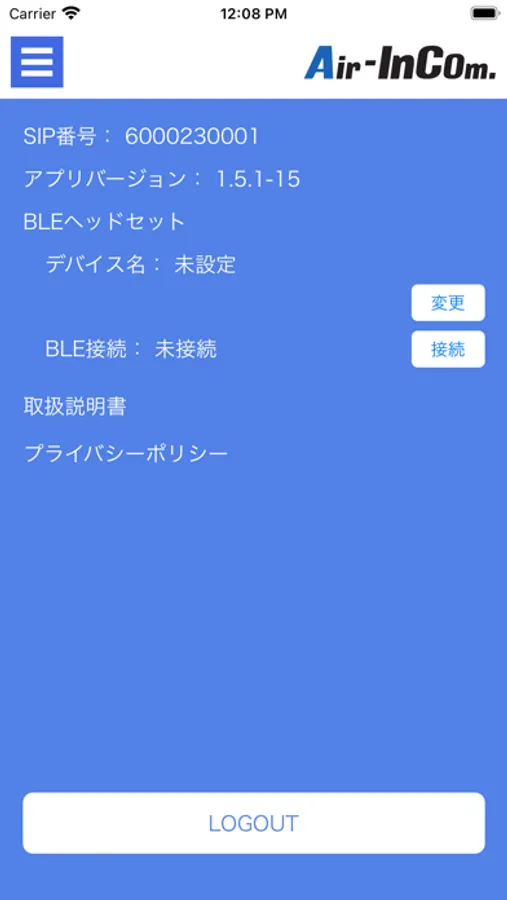 スマートフォンとオプション品のイヤホンマイクとをペアリングさせ、特定のユーザーやグループとのハンズフリー通話を目的としたツールです。個人情報収集や他のアプリへの接続はありません。