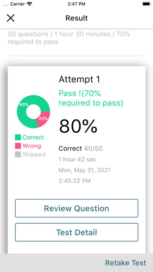 *Shows detail breakdown on each test attempt with percent improvement