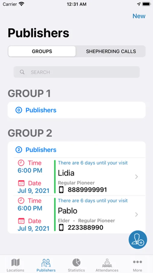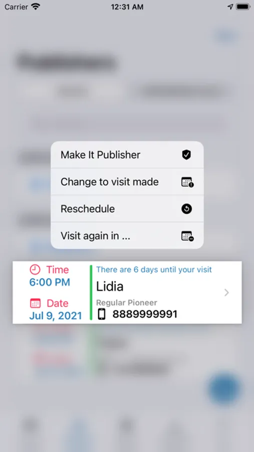 ◉Publishers: Add publishers, edit and delete. Add service reports to it, add herding visits to it. Keep a history of those visits and of those service reports.