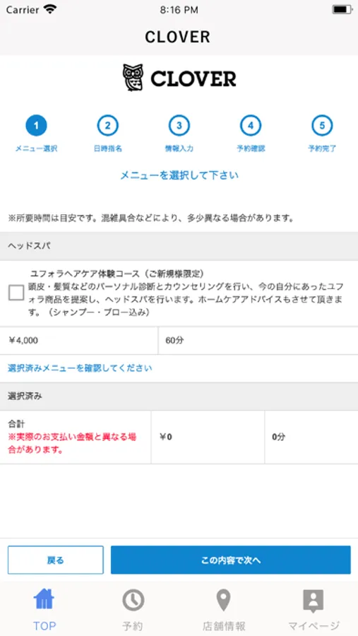 予約状況の確認やキャンセルがマイページ上から行えます。スタッフの登録が出来るので前もって担当者を登録しておけばマイページからスムーズな指名予約が可能です。