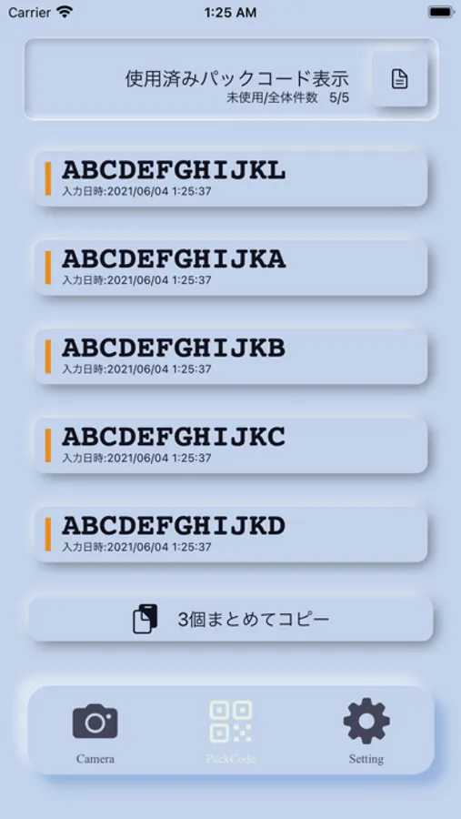 ・カメラタブで,パックコードを認識すると自動的に保存します。
