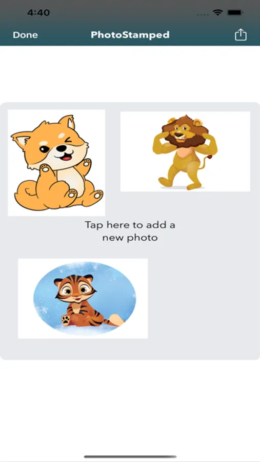 You can resize and tilt your photos and stickers, and stamp your photos with as many stickers as you’d like.