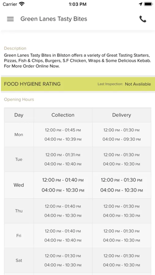 Thank you for visiting Green Lanes Tasty Bites in BILSTON. We hope you enjoy our online ordering app and your food.