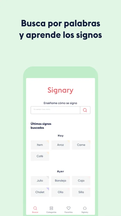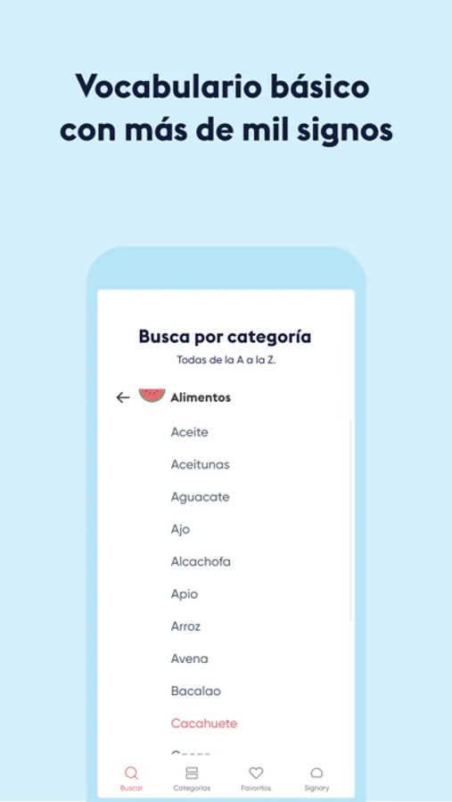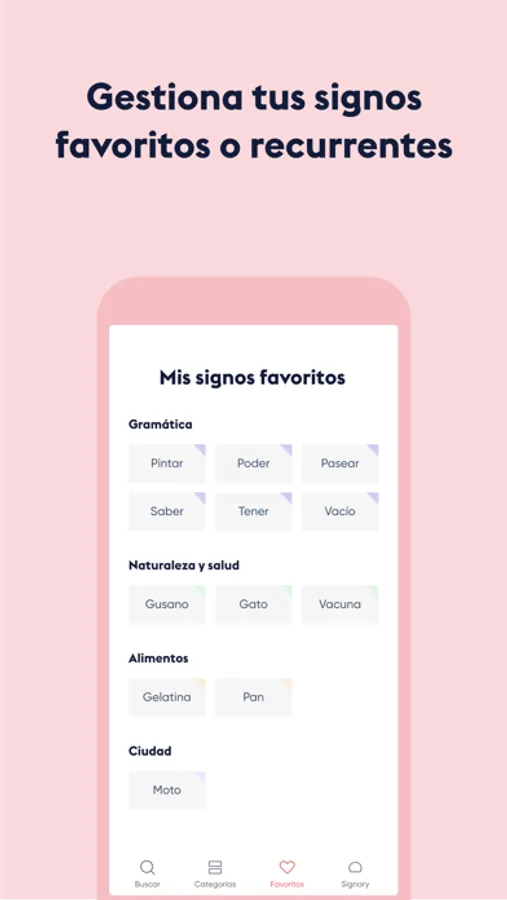 Signary es una app intuitiva y sencilla creada con el fin de favorecer la comunicación de las personas con dificultades en la expresión oral mediante signos adaptados acompañados de la emisión de la palabra.