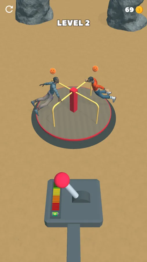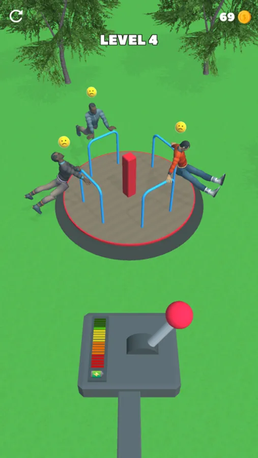 Rotate and shake merry go round as fast as possible and try to overthrow everybody.