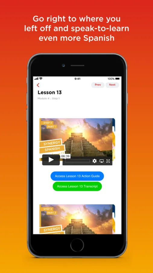 Now you can access all your Synergy Spanish courses right from your iPhone or iPad with this Free Synergy Spanish App.