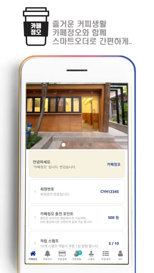 - 카페정오(홈) : 전반적인 회원정보와 매장 정보를 알려드립니다.