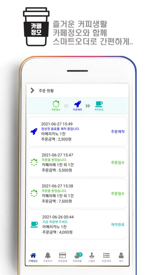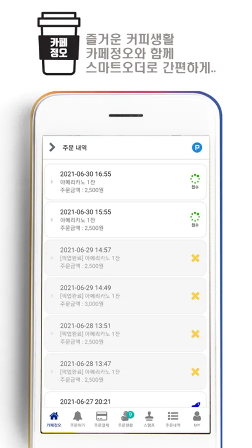 - 주문내역 : 스마트 오더로 결제한 내역을 확인할 수 있습니다.
