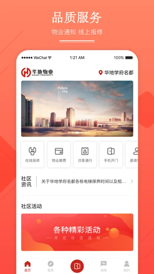 华地汇APP是华地物业智慧生活服务平台,集高品质物业服务、多元化生活服务、和谐美好邻里于一体的综合性社区服务APP;将全方位物业服务与社区生活完美融合,为您带来全新的社区生活体验。满足业主在线报修、物业缴费、手机开门等日常需求的同时,实时了解社区动态,并且还有便捷的理财服务。