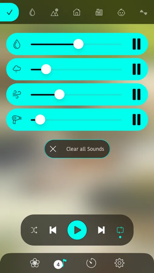 ● Over 70+ unique ambient sounds, separated in 8 Sections. (Water, Nature, Home, City, Baby, White Noise, Instruments & Animals).