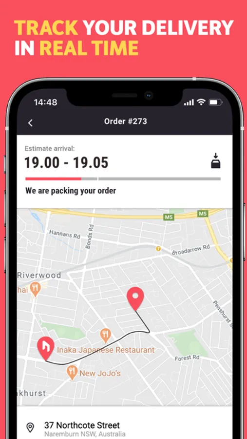 Track your food order live on a map as it heads your way. We’ll also show the estimated delivery time to your address and you’ll get notified when your order arrives.