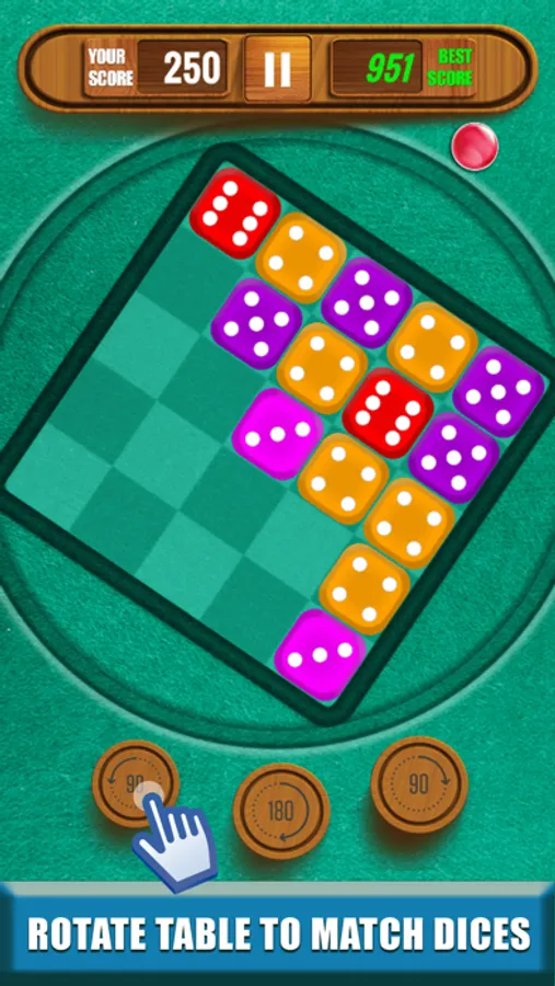 • Rotate the board to match same dices ( under the influence of gravity the dice fall down ).