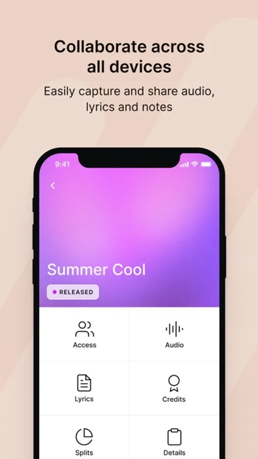 • Collaborate with music creators by uploading & sharing audio, lyrics, notes and voice memos.