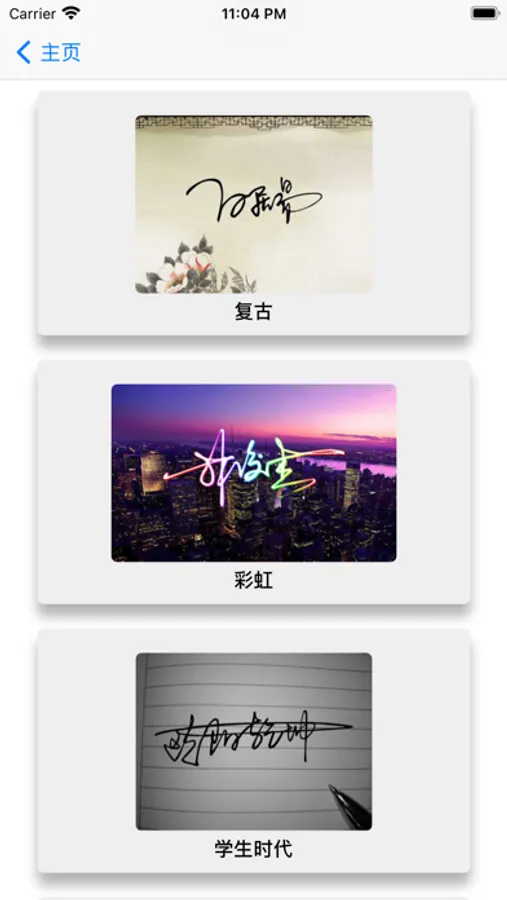 彩虹艺术签名提供多种风格的手写艺术签名,从列表中选择签名模板,输入自己想要的文字即可自动生成手写签名
