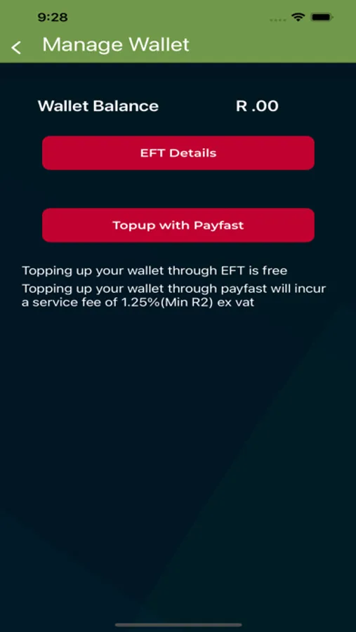 Create, fund and top-up your pre-paid wallet in the Tap 'n fuel app using PayFast Instant EFT or traditional EFT.