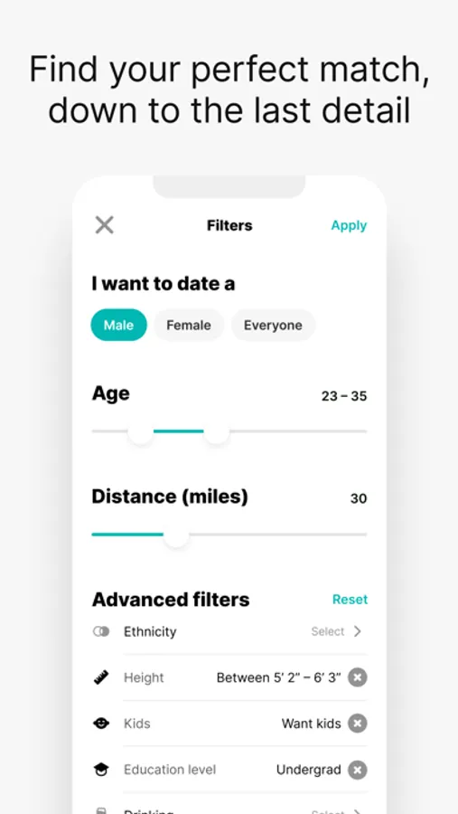Delight offers advanced, effective filters to fine-tune your search. Height, ethnicity, education, religion - you name it, we have it covered.