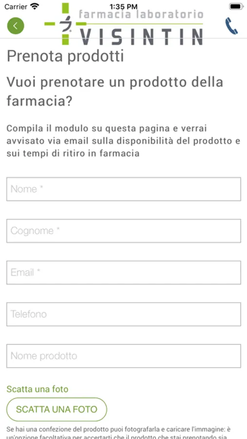 - Richiesta e prenotazione prodotti, anche mediante l'invio di immagini