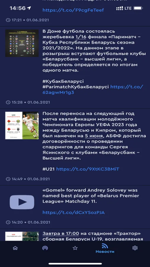 Получение уведомлений в режиме реального времени через приложение “Belarus Football”