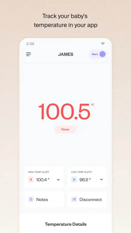 Connect theSeek a doctor’s advice in addition to using this app and before making any medical decisions. Bluetooth thermometer and display the body temperature, and give an alarm when the temperature is too high or too low.