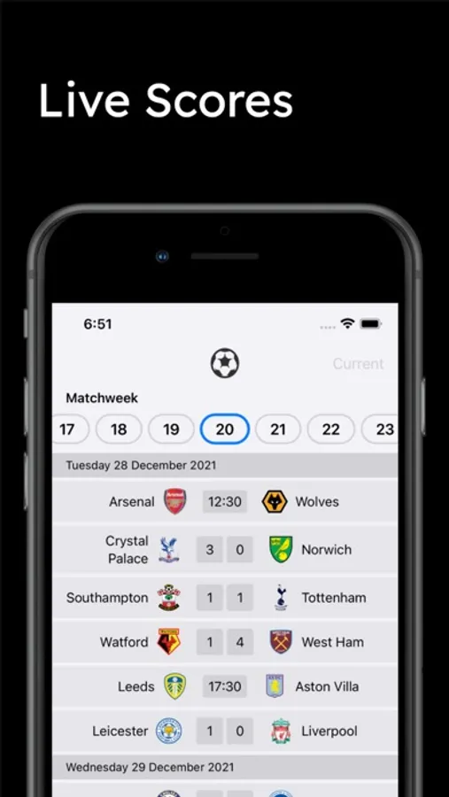 Select your favourite team and stay up-to-date with the latest results, next fixtures, team stats and form.