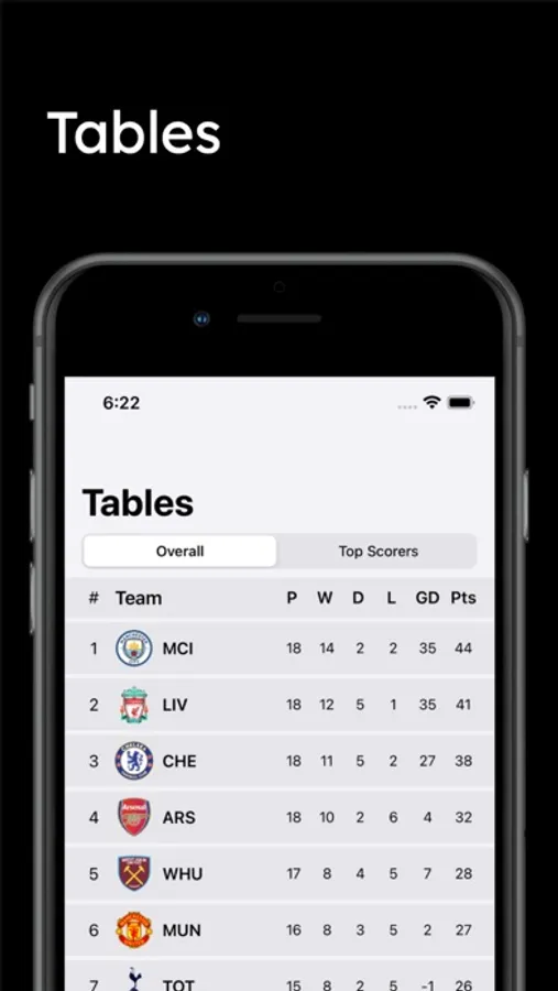 - Tables and top scorers
