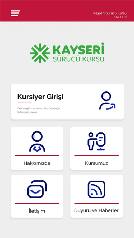 Kayseri Sürücü Kurs Mobil Uygulamasıdır. Kursiyerler İçin Eğitim ve Sınav İmkanı Sunar.