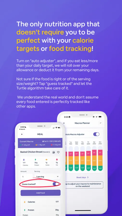 Turtle is the market's first female optimised, realistic calories and macros tracker.