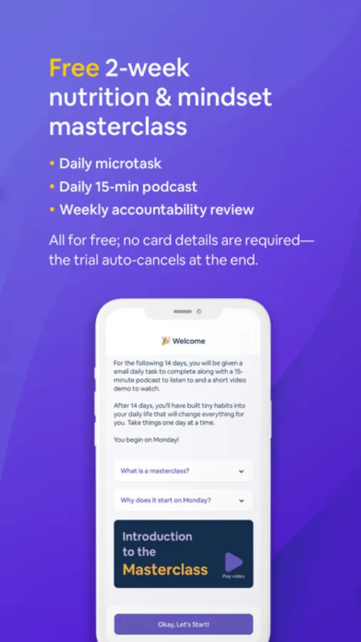 Our algorithm has been created from over 30,000 manual weekly check-ins with our members and the wisdom and insight from PhDs in nutrition, world-leading psychotherapists and AI experts.