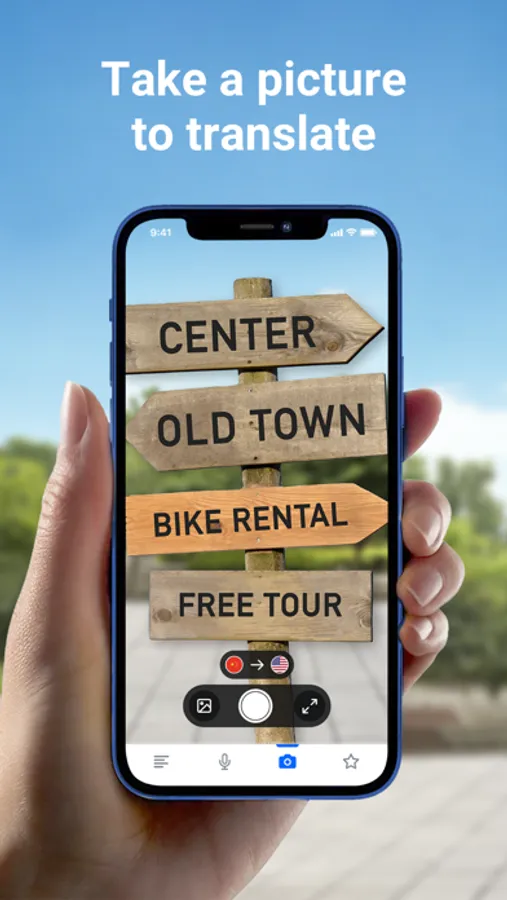 Take a photo of any text you want to translate. Translate menus, notices, and documents with the click of a button.